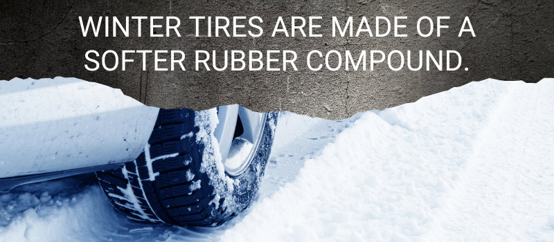 Winter tires are made of a softer rubber compound than summer and all-season tires and have several thin cuts in the tread, giving them a stronger and better grip.