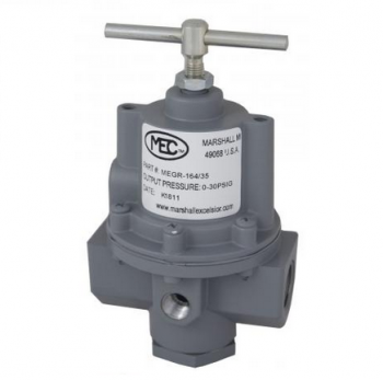 The MEGR-164 Series adjustable high-pressure regulators offer a wide selection of available pressure ranges. High pressure regulators are typically used to reduce tank pressure to an intermediate pressure for use by another regulator. They may be used as high pressure regulators on distribution systems when used in conjunction with first-stage down stream regulators. When equipped with an integral relief valve (MEGR-164SR Series), the regulator may be used as a final-stage regulator on high pressure systems. It may also be used as a first-stage regulator when set at 10 PSIG (0,69 bar) or less. The 1/4”-inch FNPT tapped side outlet can be used to install a pressure gauge or a hydrostatic relief valve. This series contains brass materials that are not compatible with anhydrous ammonia service.